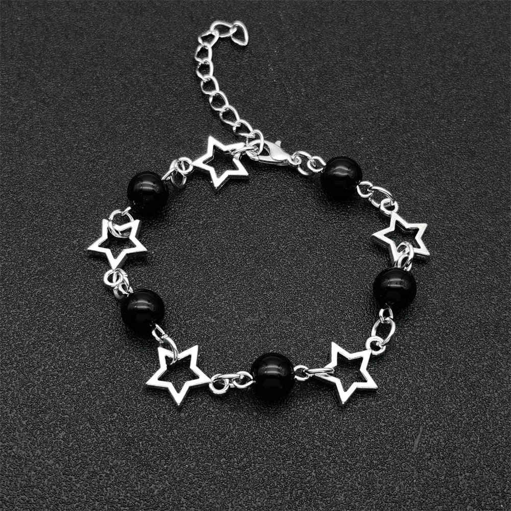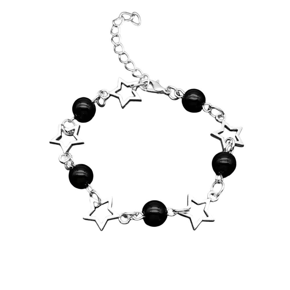 Bracelet étoile et perles noires argenté